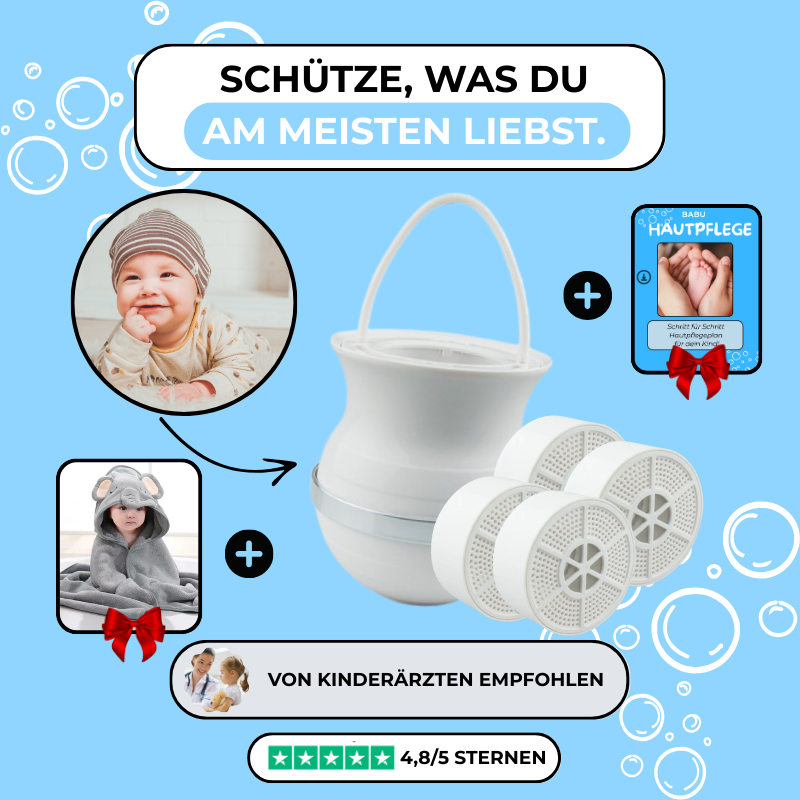 Filtert Chlor & Reizstoffe vor der Babyhaut